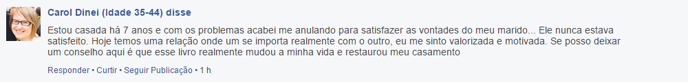 Assim como a história de Sandra, milhares de mulheres alunas do Livro Casamento de Sucesso passaram por diversas situações parecidas e tiveram o orgulho de deixar seus depoimentos de superação no casamento, após ter aplicado as técnicas do Curso, veja abaixo…